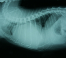 | 雑種猫、避妊済メス、5歳7ヶ月。体重4.42kg。昨日外出から帰宅後から元気なく息が荒い、とのことで来院した。膀胱炎の既往あり、室内外を出入り自由、混合ワクチン最終2ヶ月前実施済、同居猫1頭あり。 | |||