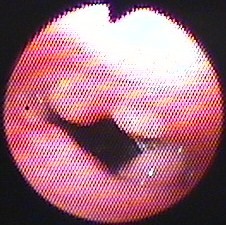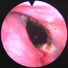 図10 図9と同日、内視鏡で診断後、ただちにAPCおよびMMC塗布し、ただちに気道開存を得た。