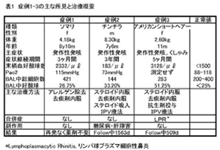 臨床診断:猫気管支喘息およびリンパ球プラズマ細胞性鼻炎
