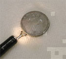 把持鉗子で1円玉を摘出