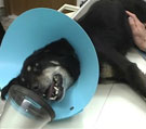 | コメント:難治性肺水腫に対しIPV療法が奏功した1例です。 IPV療法は16年前から欧米で使用されはじめた新しい呼吸理学療法です。肺を昇圧せずに高頻度の陽圧換気により肺内を直接パーカッションし、排痰促進させます。通常の酸素マスクを介し実施可能です。毎分60−400サイクルの高速かつ高流量のジェット噴流と噴流毎の大気開放機構によって、末梢気道内分泌物に対するエアーハンマー効果による気道開通と気道内反転流による排痰効果が非常に迅速に発現します。さらにネブライザーも組み込まれ、気道内乾燥防止と効果的なエアロゾール療法も同時に実施できます。動物ではまだほとんど使用されておりません。本症例のようなARDSやALIの治療では、IPV療法の特徴である即効性を最大限に生かせると思われます。動物はマスクを当てられている時には、多くの場合息を止めています。息止めとジェット噴流の違和感のため1回の連続処置時間は15秒程度しか当てられないことがありますが、その短時間の中でも15-100回のジェット噴流が作用するため、本症例のような重症例でも数分で十分な初期効果をあげられたのだと考えられます。 |