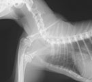 | 雑種猫、メス、11歳8ヶ月。体重2.32kg。呼吸困難を示した猫に胸部X線写真において気管の狭小化がみられ精査治療目的のため、当院紹介診療となった。ゼファー動物病院(八王子)飯野先生からの紹介。 | |||