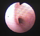 | 経過:受診時、T:37.4℃、P:138/分、R: 28。著しい吸気努力。吸気時に頚部気管中央部に強い高音調喘鳴音あり。頚部触診にてマス病変なし。SpO2<90%。血液ガス分析にてpHa 7.34, Paco2 56 mmHg, Pao2 64 mmHg, [HCO3-] 29.4 mmol/L, A-aDo2 19 mmHgと、重度な肺胞低換気所見を示した。肺機能には異常なく、中枢気道閉塞によると考えられ、気道開存処置で症状改善することが見込まれた。ただちに酸素室管理とした。同日、気管支鏡検査にて喉頭直下に全周性粘膜肥厚と粘膜表面の凹凸不整がみられた。最狭窄部を気管切開後、外径6mmのTチューブを設置した。術後、呼吸困難は消失した。気管支鏡下粘膜生検にて、間質に軽度の線維化を伴ったリンパ球主体の炎症細胞浸潤の病理組織所見が得られた。生検標本洗浄液の培養にて菌は検出されなかった。気道ステント処置に加え、ネブライゼーション(ステロイド、エピネフリン、抗生剤)およびステロイド・CPシロップ内服にて術後管理を行った。術後10日目に、血液ガス分析にてpHa 7.34, Paco2 30 mmHg, Pao2 95 mmHg, [HCO3-] 15.8 mmol/L, A-aDo2 18 mmHgと、肺胞低換気所見は消失し、正常化したので、退院とし自宅管理となった。2ヶ月後に、気管支鏡検査で内部観察後、可能であればTチューブを抜去を試みることになった。 | |||