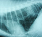 | 経過:3年前呼吸荒いとのことで受診あり、浅速呼吸と胸部レントゲンでのびまん性間質影から慢性間質性肺炎と診断しステロイド治療を続けてきた。しかし嘔吐を機会に呼吸困難が起こったので来院した。努力性呼吸あり血液ガス分析にて低酸素血症(PaO2 69.1mm Hg)を示した。胸部レントゲンではびまん性網状影に加え左後葉中央部に浸潤影が出現していた。感染の可能性ありステロイドを中断し気管支拡張と抗生剤療法に切り替えた。2ヶ月後、呼吸状態は悪化し低酸素血症も進行した(PaO2 51.9mm Hg)。慢性間質性肺炎の再燃の可能性あり、浸潤影の原因解明のため気管支鏡にて気道の観察と浸潤影領域の生検を施行した。気道粘膜全体には異常がみられなかった。生検は透視下にてLB2D2に慎重に鉗子を挿入し行った。3回繰り返した。白色粘液状物が採取されたが細菌・真菌は検出されず、細胞診ではわずかの炎症細胞と気管粘膜上皮のみで腫瘍性変化はみられなかった。浸潤影は粘液栓によるもので、呼吸状態悪化はステロイド中断による間質性肺炎の再燃と考えられた。検査後、粘液栓を取り除いたためか全身状態は良好となり2日目に退院となった。その後、ステロイドと去痰剤投与を始め元気食欲が極めて改善した。 | |||