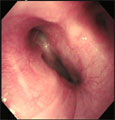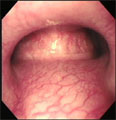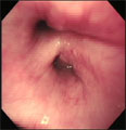 ビーグル、メス、11歳7ヶ月。体重4.34kg。9ヶ月前より慢性発咳の治療を行っていたが症状の消退を繰り返していたので気管支鏡検査を行うことにした。