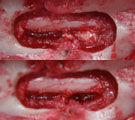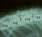 | 経過:受診時、後肢の対麻痺あり、ほとんど随意運動なかった。痛覚認知あり尾運動は認められた。椎間円板ヘルニアが疑われた。まず入院で内科療法を2日間試みたが次第に尾運動がなくなってきたので、外科的減圧術を考慮して脊髄造影を行った。T12-T13の椎体間背側に充填欠損が認められ、他の部位には異常なかった。そこでこの部位の片側椎弓切除術を行った。術中、脱出した髄核が脊髄を圧迫していることが分かりそれを全て摘出した。術後経過は良好であり、2週間後には自分で立って食事を食べれるようになった。 | |||